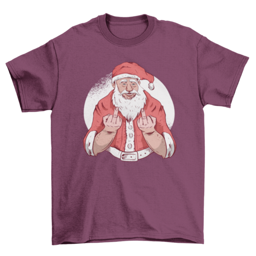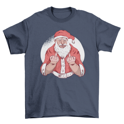 Cool Christmas t-shirt design featuring an illustration of Santa Claus flipping off.