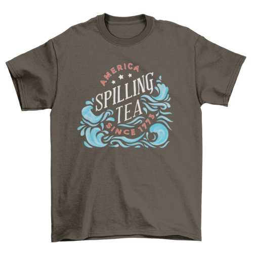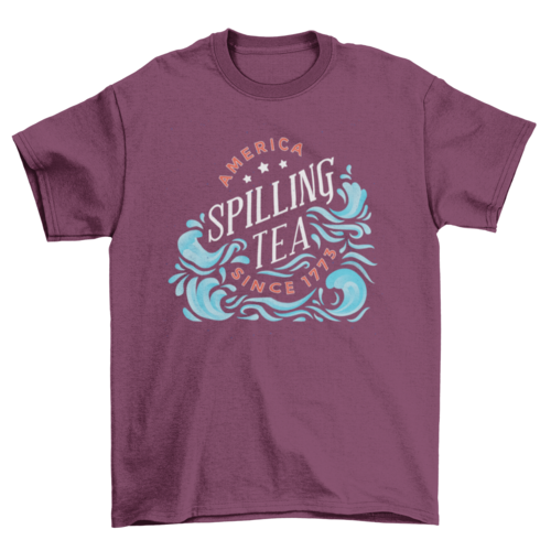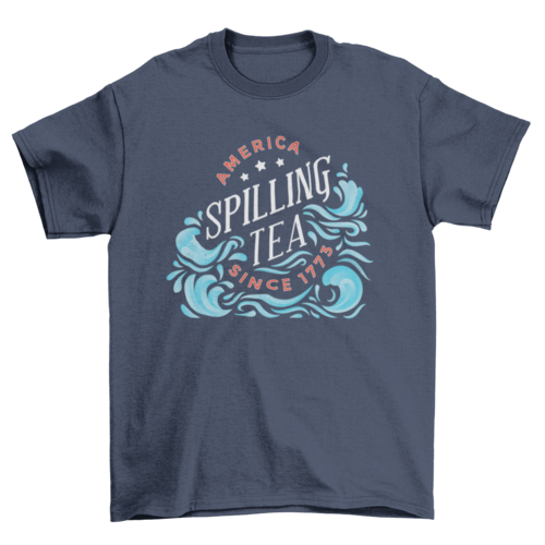 Cool american t-shirt design featuring the quote â????America spilling tea since 1773â???? in white and orange letters with white stars and light blue waves